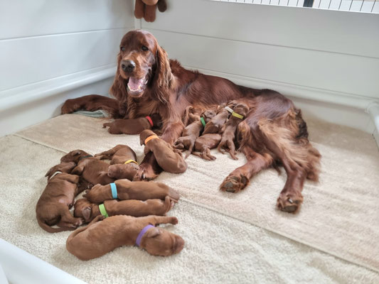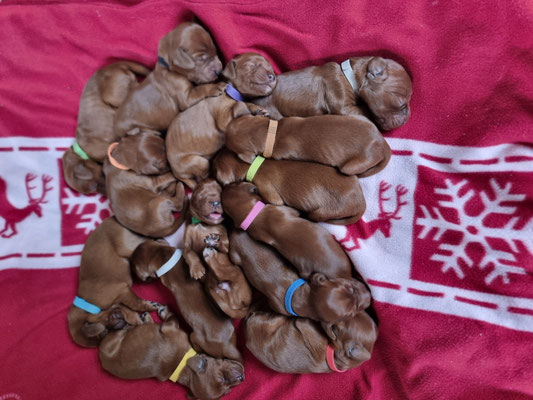 Am 02.10.2025 erblickten 14 Puppies 6 Jungs & 8 Mädels das Licht der Welt. Allen und auch der Mama Phiala geht es sehr gut. Phiala ist eine so tolle Mama. Die Freude ist riesig.