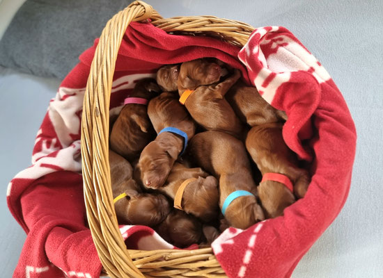 Am 02.10.2025 erblickte mein T-Wurf das Licht Welt....mit 14 Puppies!! Allen 8 Mädchen und 6 Jungs sowie der Mama Phiala geht es gut. Freu mich riesig.